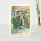 Tarjeta de Navidad sueca deliciosa que muestra a Papá Noel que llega una puerta de jardín con un saco grande de regalos y de juguetes.