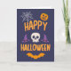 Tarjeta Festiva Diseño naranja de murciélago de calabaza espeluzna