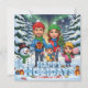 Celebre la temporada con encanto y alegría utilizando esta tarjeta de vacaciones personalizada de la familia de dibujos animados, que presenta un fondo nevado festivo, atuendos invernales acogedores y el nombre de su familia personalizado. Esta tarjeta de felicitación cuadrada es perfecta para difundir alegría a amigos y seres queridos con un estilo divertido y animado que captura la calidez de las fiestas. Ideal para familias que desean una forma moderna y ligera de enviar sus deseos navideños con un toque creativo y memorable.