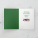 El Bulldog de la parte delantera de esta tarjeta dice que estuvo "listo para Navidades" este año. Se sienta frente a un árbol de vacaciones decorado, con un saco de regalos de Santa a su lado. El sentimiento continúa por dentro, y debería traer una sonrisa al receptor. Todo el texto se cambia fácilmente a cualquier otra cosa que prefieras.
