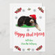 Tarjeta Festiva Dog in Santa Hat And Berries Flat Holiday Card