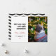 Esta moderna tarjeta fotográfica de vacaciones incluye las palabras "don we now our horribles sweaters" en sans serif a la izquierda con espacio para una foto a la derecha. El saludo de Feliz Navidad, los nombres y el año son todos personalizables.