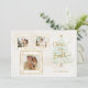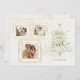 Fun y caprichoso saludo de vacaciones con tres marcos de fotos cuadradas de doodle dibujados en línea dorada, árbol de navidad de acuarela con oro personalizado. La parte posterior incluye una plantilla de foto adicional y campos de texto.