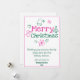 Tarjeta Festiva Doodles navideños rosados y verdes