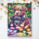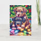 Tarjeta Festiva Dos Cachorros Cuitos Jugando Bajo El Árbol De Navi