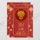 Tarjeta Festiva Dragón de Madera Rojo Dorado Año Nuevo Lunar 2024