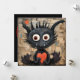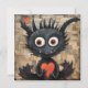 Ilustración de dibujos animados linda de un dragón/gato sosteniendo un corazón rojo. Arte original de Circe Denyer.