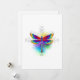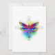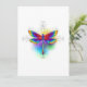 Luminosa, arco iris, libélula poligonal sobre fondo blanco, pintada con acuarela.