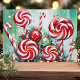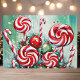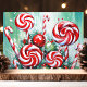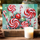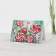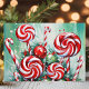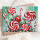 Envía deseos dulces de vacaciones con esta vibrante tarjeta de Navidad que presenta una disposición caprichosa de cañas de caramelo y espirales de menta. Contra un fondo verde nevado, este diseño alegre captura la diversión y la alegría de la temporada navideña. Perfecta para difundir el espíritu festivo, esta tarjeta es ideal para cualquiera que ame los dulces de Navidad.