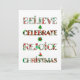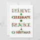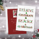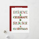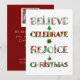 Difunde la alegría navideña con este diseño de patrón lindo que presenta "Cree, Celebre, Regocíjese, Navidad" en tipografía festiva llena de motivos navideños rojos y verdes. Cada letra muestra adornos, árboles de Navidad, poinsettias y patrones estacionales clásicos que traen alegría y calidez a tus celebraciones.
