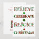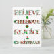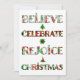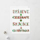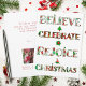 Difunde la alegría navideña con este diseño de patrón lindo que presenta "Cree, Celebre, Regocíjese, Navidad" en tipografía festiva llena de motivos navideños rojos y verdes. Cada letra muestra adornos, árboles de Navidad, poinsettias y patrones estacionales clásicos que traen alegría y calidez a tus celebraciones.