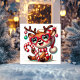 Tarjeta Festiva Dulces renos con bufanda a rayas y bastón de caram