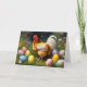 Tarjeta Festiva Easter Chicken in the Flower Garden & Easter Eggs