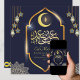 Tarjeta Festiva Eid Mubarak Caligrafía Árabe Crescent Gold Azul