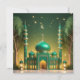 Tarjeta Festiva Eid Mubarak Mezquita Media Luna Estrellas Verde Do