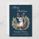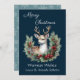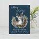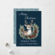 Tarjeta Festiva El ciervo pacífico, con Holly Wreath, sobre el azu