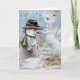 Tarjeta Festiva El conejo come la nariz del muñeco de nieve