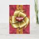 Agarra a tu novia con esta tarjeta de colores vivos - diseñada para que parezca un regalo envuelto con papel rojo y cinta roja y dorada. Una gran reverencia dorada en el centro tiene un corazón rojo y semitransparente de oro encima. 2 corazones de oro más semitransparentes aparecen encima y debajo del gran arco. La cubierta frontal interior tiene 3 corazones rojos estilizados y la cubierta posterior interior tiene un mensaje especial que se puede personalizar. Obra y diseño de Karlajkitty.