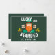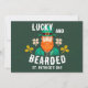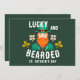 Afortunadas y con barba San Patricio, Día de Leprechaun San Patricio. Celebre el Día de San Patricio con estilo con esta tarjeta festiva con un diseño de leprechaun! El audaz leprechaun barbudo, vestido con un traje tradicional y sombrero de alto. El lúgubre texto, "¡Suertudo y con barba!", añade un giro humorístico, perfecto para todo aquel que ame la cultura irlandesa, las barbas, o sólo un poco de buena suerte.