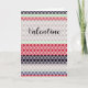 Una carta de San Valentín muy bonito inspirada en el romance de los antiguos motivos de encaje. El blanco domina las elegantes rayas de color rojo, gris lila y tonificante. La redacción en el frente es simplemente 'Valentine' en una atractiva tipografía de escritura. La tarjeta está en blanco en el interior, para su propio mensaje individual.