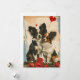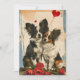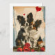 "Celebra la temporada de amor con nuestra adorable tarjeta El día de San Valentín con dos perros Papillon abrazados en medio de una ducha de corazones. Esta encantadora escena captura la esencia de la compañía y el afecto, convirtiéndolo en la manera perfecta de expresar tu amor. Comparte la calidez y la alegría del El día de San Valentín con esta encantadora carta que combina maravillosamente la dulzura de la compañía Papillon y el sentimiento del amor".