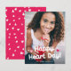 Esta moderna pero dulce tarjeta de fotos El día de San Valentín incluye una foto de marco completo y un divertido saludo de tipografía que dice "Feliz Día del Corazón". Es la tarjeta perfecta para enviar a amigos y familiares O para usar como aula de San Valentín.