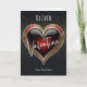 Quítate el Valentine de los pies con esta atractiva tarjeta El día de San Valentín personalizada. El diseño presenta un cautivador corazón rojo rubí, con la palabra 'Valentine' en un guión elegante, añadiendo un toque de romance extra. El elegante fondo negro y los sutiles detalles purpurinas crean un toque glamuroso. Dentro está el mensaje "Feliz Día de San Valentín", que se puede personalizar si es necesario. Haz que esta tarjeta sea realmente especial añadiendo el nombre del destinatario en la parte superior de la tarjeta y tu propio mensaje personal debajo del corazón. ¡Esta carta hará que su corazón brille!