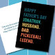 🎉 Celebrar el Día del Padre con un golpe! 🏆 Nuestra tarjeta del 'Día del Padre Feliz' es la manera perfecta de mostrar amor y admiración hacia el increíble marido, papá y la absoluta Leyenda de Baloncesto en tu vida. 🎾 👨 👧 👦 Esta carta es más que sólo papel; es un sincero tributo a la pasión y dedicación mostradas a la cancha de pickleball y a la familia. El diseño colorido con colores retro y vibraciones vintage refleja una actitud de encaje tanto dentro como fuera de la cancha. 🎾 🥇 Esta carta no es sólo para un padre común y corriente; es una Leyenda de Pickleball que conquista puntos de juego y corazones. ❤️ Con el campo [Nombre] de personalizable, puede agregar ese toque personal para hacer que esta tarjeta sea única suya. Esta tarjeta del Día del Padre está hecha a medida para el marido amante del pickleball que es una verdadera leyenda dentro y fuera de la cancha. ¡Muéstrale que es el campeón en tus ojos con este saludo personalizado! 🎾 👑