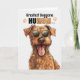 Esta tarjeta del Día de la Madre presenta un estilizado ilustracion de un perro Terrier Irlandés de color marrón rojizo con gafas de sol con un diseño de huella de leopardo. Su lengua se extiende y tiene un collar adornado con un estampado de leopardo. El fondo de la tarjeta es blanco. En la tarjeta, encima de la imagen del perro, están las palabras "Greatest Doggone" y "HUMOM" en un texto oscuro y audaz. Hay pequeñas huellas de pata a ambos lados del texto. La impresión general es una tarjeta de saludo alegre y juguetona para una madre amante del perro.
