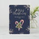 Tarjeta Festiva Elegant Blue Candy Canes Snowflakes Christmas Card