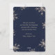 Elegant blue Christmas card featuring sparkling snowflakes, candy canes, holly and red berries on a dark blue background.