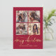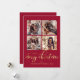 Tarjeta Festiva Elegant Gold Script 4 Photo Collage Red Christmas