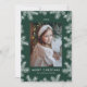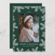 Elegant holiday card featuring your vertical photo framed by white pine boughs with a green background. Personalize the pine branch holiday card with a custom greeting, the year, and your family name. The card reverses to display your custom message in white lettering.