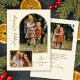 Elegant Gold Arch 3 Photo Happy Holidays Christmas Card. Celebrate the season in style with this elegant family photo Christmas card featuring a modern gold color arch-shaped photo frame. Personalize it with your favorite family photos, family name, and the year on neutral off white or cream beige background. The festive minimalist design is highlighted with elegant faux-gold color Happy Holidays calligraphy text, creating a warm and timeless look. The back showcases one photo and holiday message template with hand lettered name. A perfect holiday card to share with family and friends in winter holiday season.