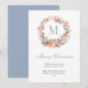 Tarjeta Festiva Elegant Monogram Wreath Dusty Blue Modern