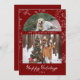 Share warm seasonal wishes with these elegant Christmas cards featuring two family photos arranged in a modern arch layout—perfect for showcasing a pet photo on top. Designed in classic red and white with vintage foliage and damask-inspired details, the front includes “happy holidays” in a modern handwriting script along with your personalized family name and year. The back offers space for a short message and your family’s first names, blending refined typography with a timeless holiday look. A beautiful, festive way to share your family photos and celebrate the season.