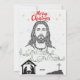 BACK SIDE: A Powerful Message of Faith The reverse side features a stunning minimalist illustration that honors the reason for the season: the compassionate face of Jesus Christ, the humble Nativity scene, and the symbolic Cross. This powerful visual adds depth and sincerity to your holiday greetings.