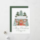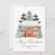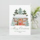 Send warm holiday wishes with this elegant watercolor Christmas card featuring a charming brick home with a red door surrounded by snow-covered trees. “Merry Christmas” is displayed below in classic green calligraphy script, with your family name and year shown underneath. The cozy winter home scene captures timeless holiday charm, while the back features your custom message on a coordinating snowy green background.