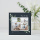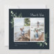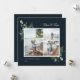 Elegante color de agua vegetación botánica, tarjeta de foto de vacaciones. Características, diseño de 3 collage cuadrado de fotos, texto blanco y fondo festivo de color azul marino.