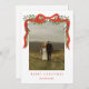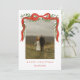 Elegante Bow Rojo con tarjeta de vacaciones de Navidades de fotografía verde. Haga clic en el botón personalizar/editar con la herramienta de diseño para personalizar este diseño con sus datos personales.