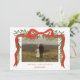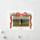 Elegante Bow Rojo con tarjeta de vacaciones de Navidades de fotografía verde. Haga clic en el botón personalizar/editar con la herramienta de diseño para personalizar este diseño con sus datos personales.