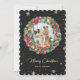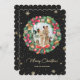 Tarjeta Festiva Elegante Black Gold Snowflakes Wreath Photo
