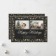 Tarjeta Festiva Elegante Black Gold Two Photo Happy Holidays Card