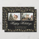 Elegante foto personalizado negro y dorado Happy Holidays con dorada en fondo negro. Personalice fácilmente esta tarjeta de vacaciones con sus fotos favoritas y el nombre de la familia.