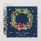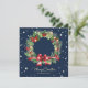 Tarjeta Festiva Elegante Blue Holly Berries Pine Wreath Foto