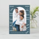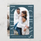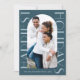 Esta tarjeta de felicitación contemporánea de dos Navidades de fotografía presenta elegantes tonos azules y tipográficos grandes. Por favor vea esta moderna colección de vacaciones monocromáticas para colores adicionales y para coordinar accesorios de correo.