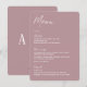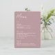Tarjeta de menú rosa Rubor para eventos formales y bodas, con flores de albaricoque acuarela y follaje de jardín. Un diseño botánico contemporáneo, sencillo pero elegante, inspirado en el estilo boho vintage, con monograma en la parte posterior.