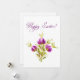 Celebre Pascua con esta hermosa tarjeta de felicitación pintada a mano que presenta un diseño floral tradicional de Petrykivka ucraniano. Con elegantes flores moradas con delicados acentos marrones y exuberantes hojas verdes, se crea una estética primaveral vibrante y atemporal. Esta tarjeta es ideal para enviar cálidos deseos de Pascua a la familia y amigos mientras se celebra la belleza del arte popular.