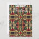Esta tarjeta de Feliz Navidad presenta un lujoso patrón de cuadros rojos, verdes y dorados. Este diseño combina el clásico cuadro con encanto festivo.