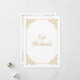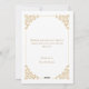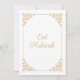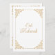 Tarjeta elegante de fiesta islámica musulmana de Eid Mubarak. Celebre un Eid ul-Fitr o Eid ul-Adha alegre y feliz con su familia y amigos enviando esta tarjeta de regalo de felicitación especial. Fondo de color marfil blanco de lujo con un follaje de hoja barroca vintage dorado en la esquina del marco del borde. La fuente de caligrafía clásica en oro está escrita en el frente y en la parte posterior. Puede personalizar el color de la tarjeta y el tipo y tamaño de letra para que sea único para usted. Mejores deseos. Imprimible. Her Line For Design en Zazzle.